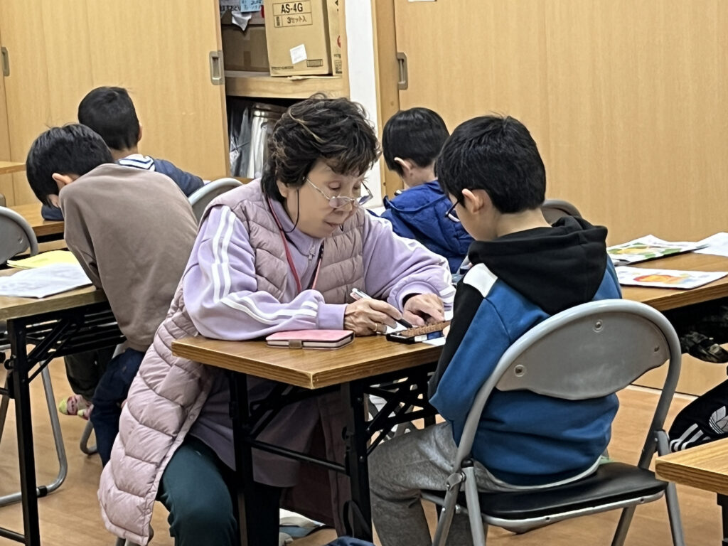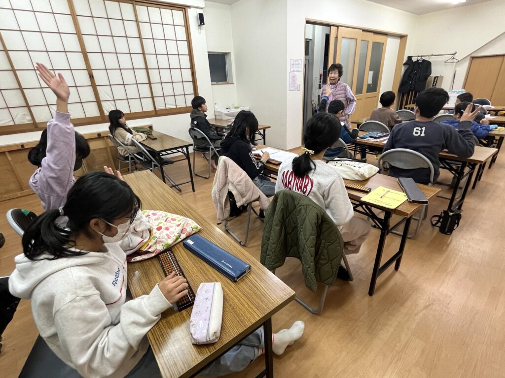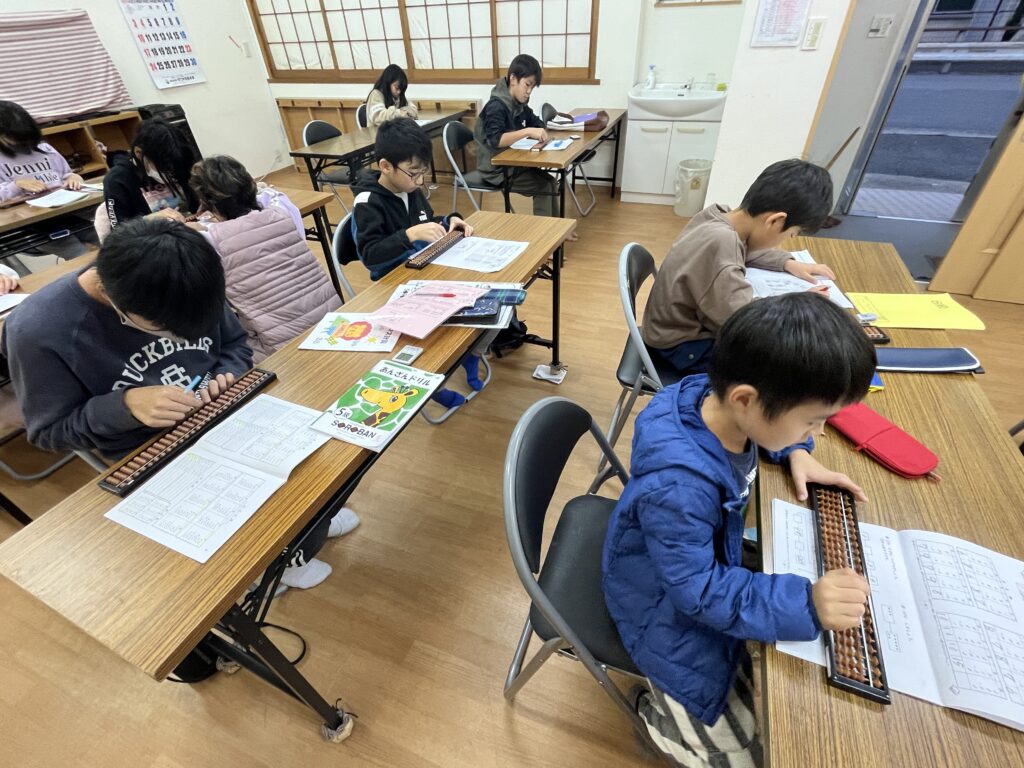 そろばん教室では、府内有数の大規模校である成和小学校から集まる子どもたちが学んでいます。皆仲良く、楽しみながら助け合ってともに学ぶ環境があります。