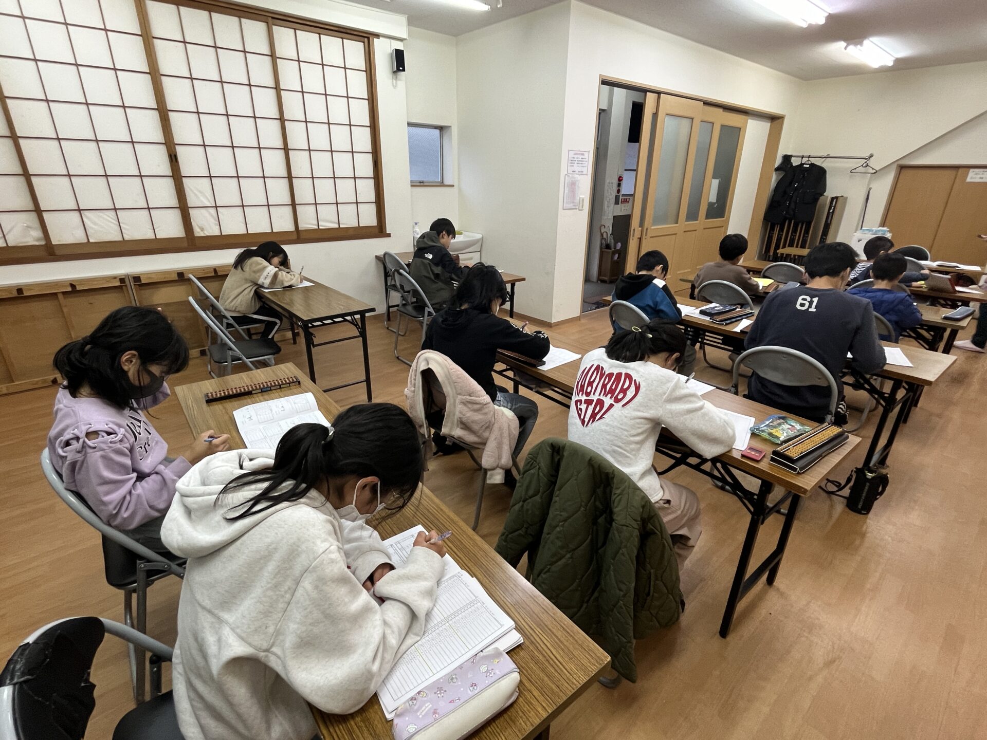 そろばん教室では、府内有数の大規模校である成和小学校から集まる子どもたちが学んでいます。皆仲良く、楽しみながら助け合ってともに学ぶ環境があります。