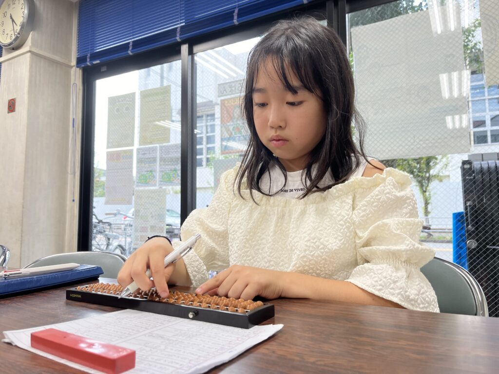 習いごとはそろばん、ダンス、スイミングと忙しい毎日。そろばんは小2で学校の算数の授業のとき、自分の計算が遅いと感じたので、お母さんに相談してはじめました。