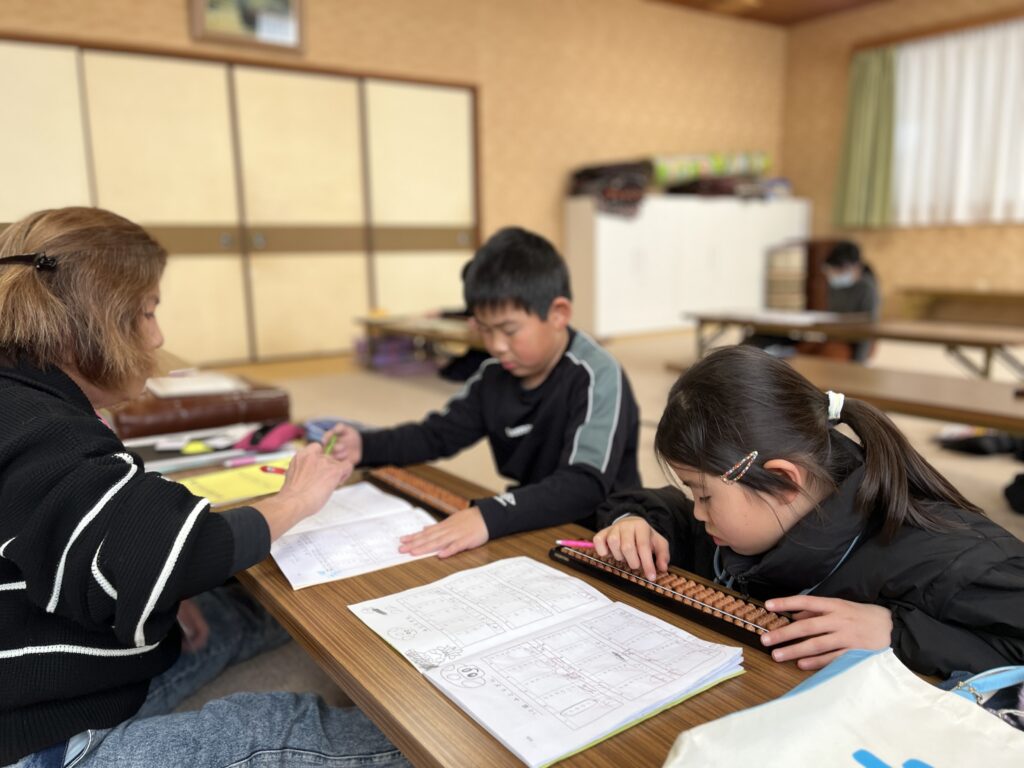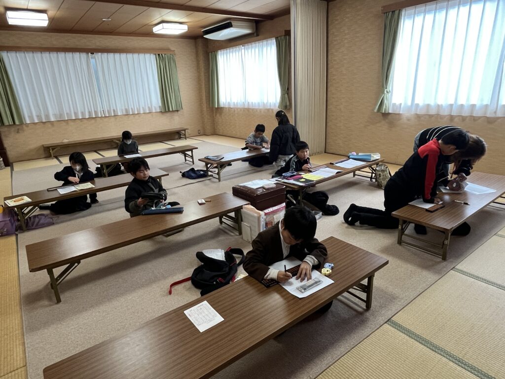 はじめて田中教室に来たときには、子どもたちの元気が有り余っていて、お行儀が悪かったり、畳に寝転んだりして学びに集中できる環境とは言えませんでしたが、市岡教室で長く指導していた経験から、子どもたちにきめ細かく接して、保護者の方々にも理解を求め、厳しめに指導することを方針として、学ぶ姿勢を教えることから始めました。